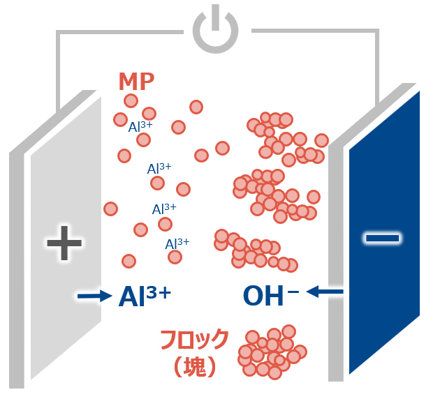 ③ 電気の力でMPを集めて除去:電気凝集(EC)