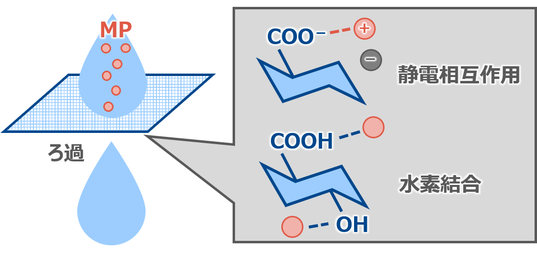 すでに環境中へ流出し、回収が難しいMPを捕捉するため、さまざまな研究が進んでいます。ここでは、物理学的な方法、化学反応を利用した方法および機能性材料による方法の三つの観点から、計6種類の技術を紹介します。
